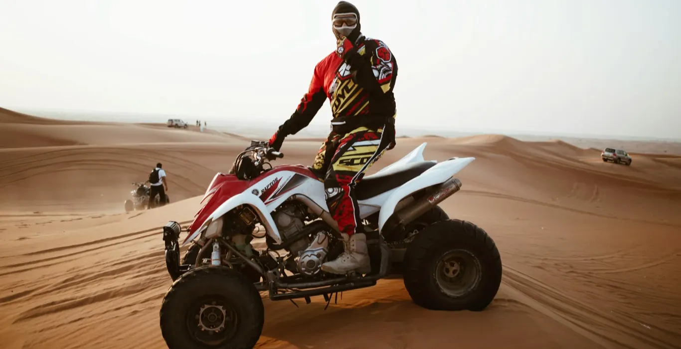 - 🏜️ Attività: 1 ora di Quad biking + 30 minuti di cavalcata in cammello al tramonto.