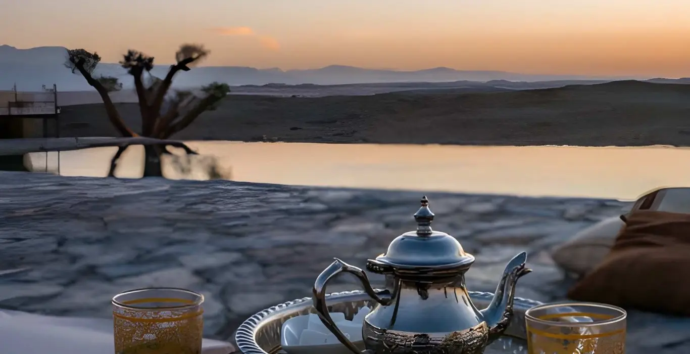 - Descrizione: Arrivo al campo per il relax. Accoglienza con tè alla menta e pasticcini marocchini mentre il cielo si riempie di stelle.